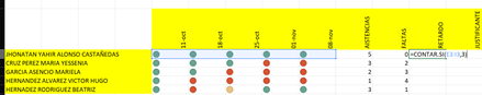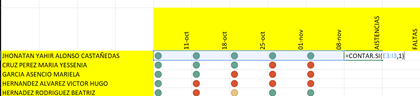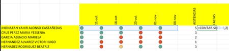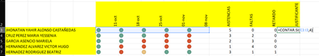 5, DESPUES SELECCIONAS LA CELDA DE TOTAL DE ASISTENCIA DESPUES PONES EL ICONO