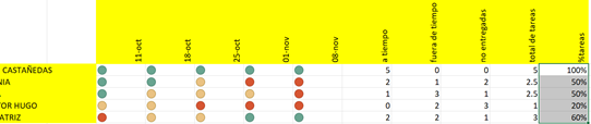 (ENTREGADAS A TIEMPO), 2 ES ROJO (NO ENTREGADAS), 3 AMARILLO (FUERA DE TIEMPO),
