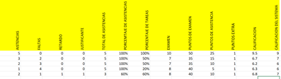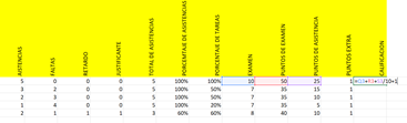 PRIMERO EN UNA CELDA SEPARADA PONES CUANTAS ASISTENCIAS DEBEN SER AL 100%